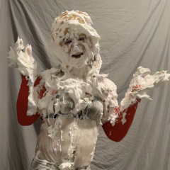 Piestooge was surprised by FormalWAM with a big sloppy cream pie to the face
